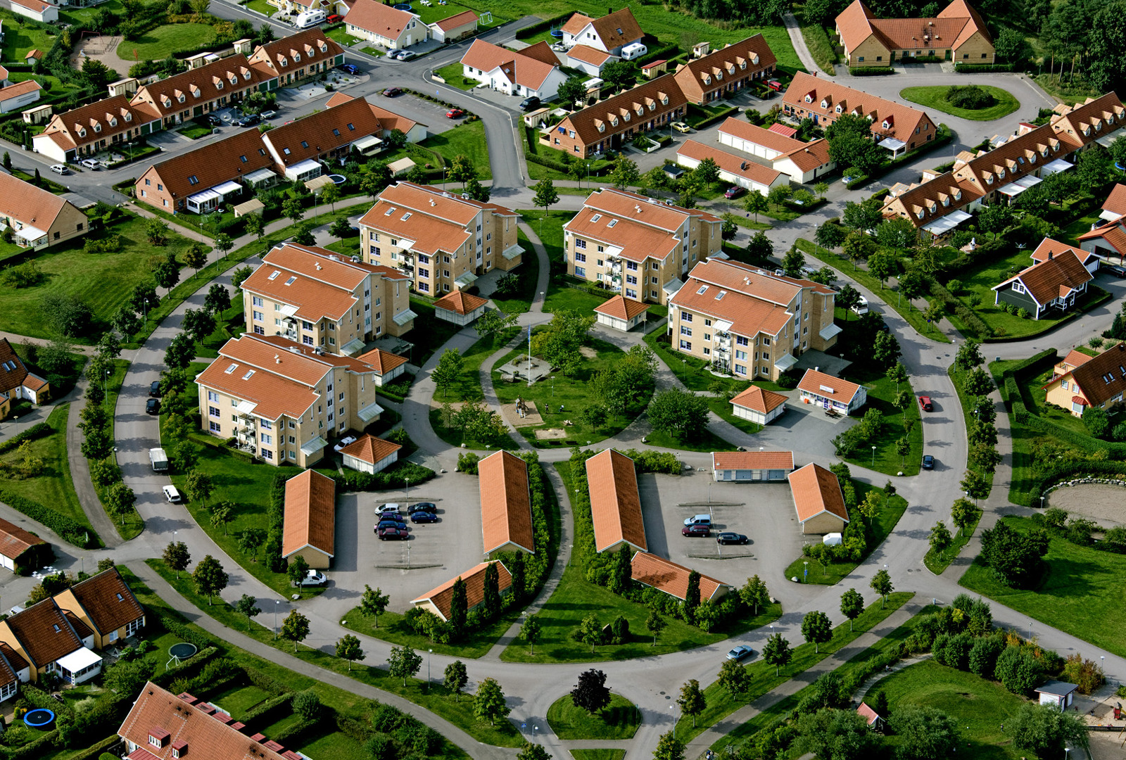 Området består av fem hus som byggdes på 1990-talet. Totalt finns 65 lägenhete. Husen är byggda i en halvcirkel med ett grönområde i mitten, så alla lägenheter har fin utsikt mot det gröna.