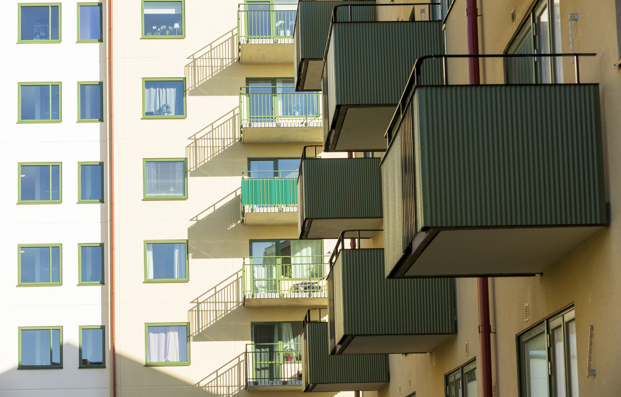 Här bor du i klassiska två-, tre- och fyravåningshus utan hiss, byggda med 50-talskaraktär och omgivna av grönska. De flesta lägenheter har balkong, och i källaren finns tvättstugor. Garage går att hyra.