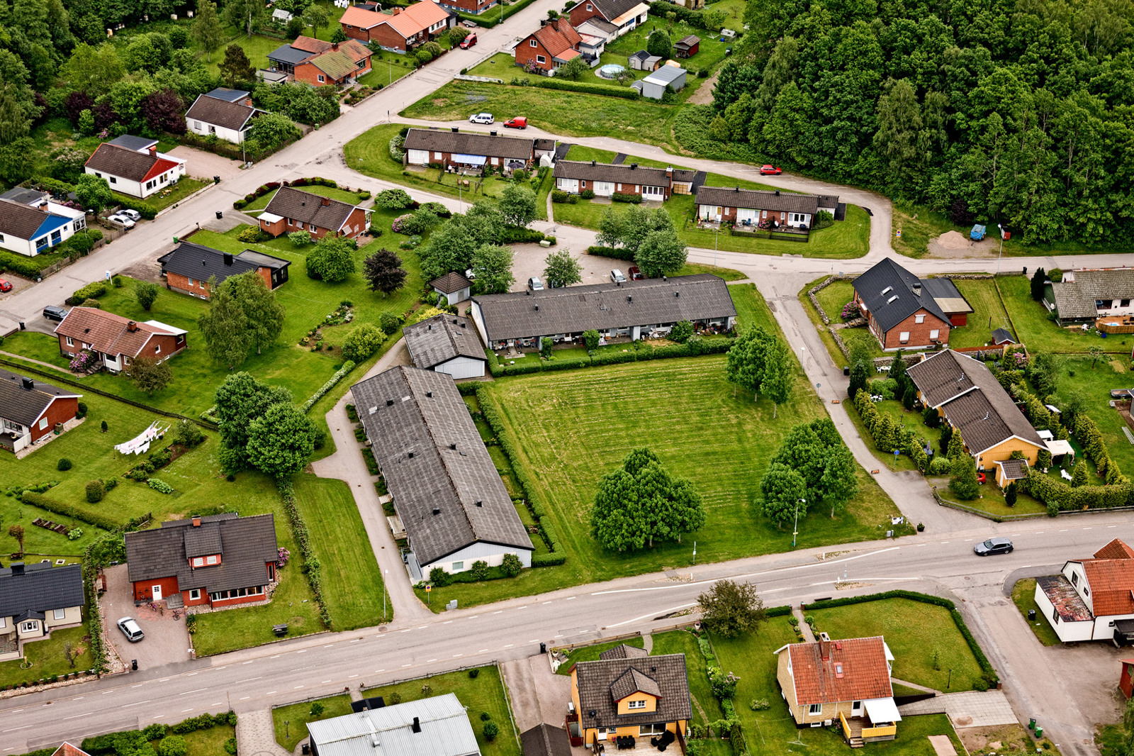 Här finns tre tegelhus med totalt nio lägenheter, alla i markplan. Du har egen utgång mot grönyta, vilket skapar en lugn och trivsam känsla – som att bo i eget hus, men med hyresrättens bekvämligheter.
