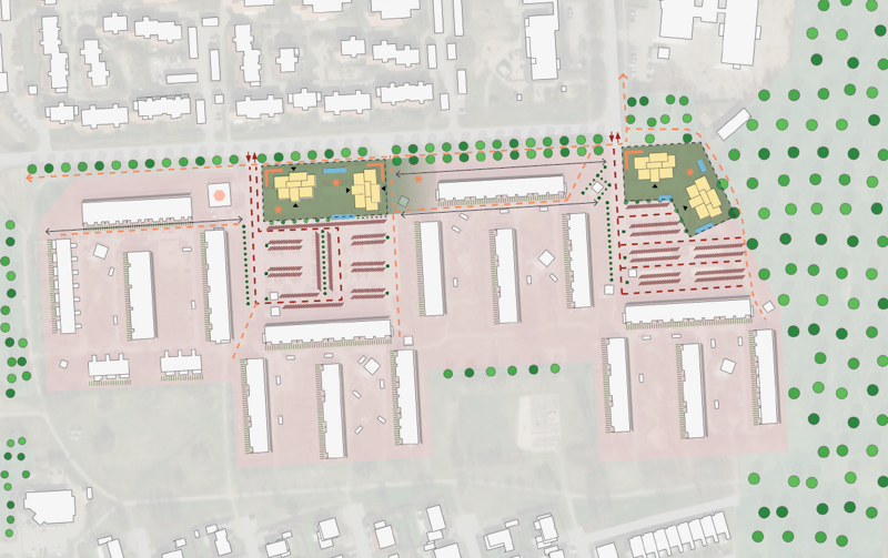 Vi på HFAB har undersökt möjligheten att förtäta inom vårt bestånd i Bäckagård i det området som kallas Gamla Bäckagård. Här vill vi bygga nya bostäder med modern och tillgänglig standard som kompletterar HFAB:s befintliga utbud i området. Projektet ska också bidra till att stärka områdets karaktär och öka tryggheten.